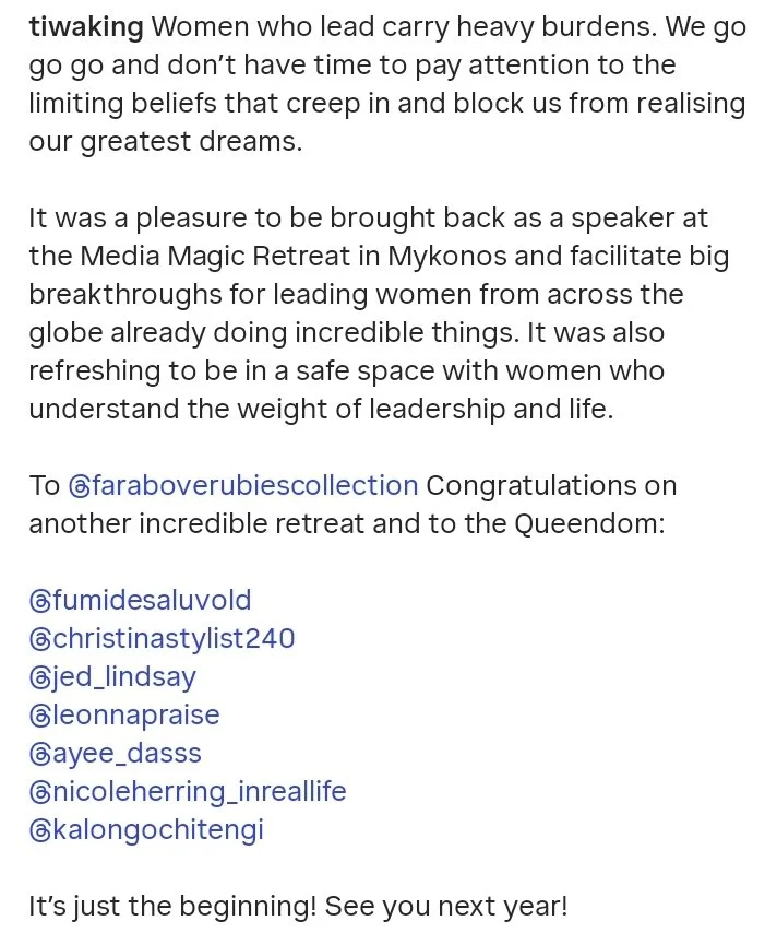 “Nina, you did that! You brought a group of amazing women together and you helped us bond, to see our worthiness and it was everything I could have dreamed of and more! I’m going to leave here lighter, better, more focused and, just, a better person overall for this experience. Thank you so much!” (Tuoyo)